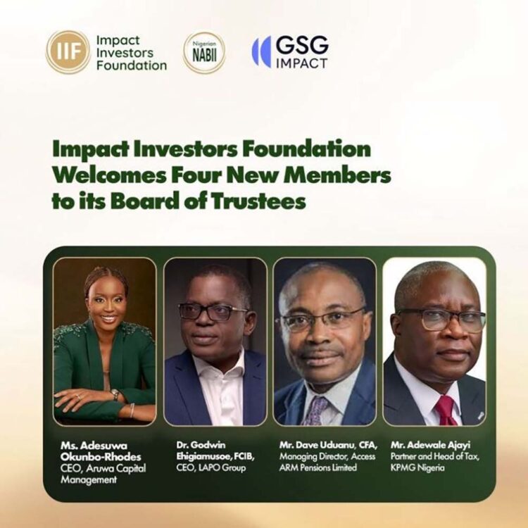 I am honoured to have been appointed to the Board of Trustees of the Impact Investors Foundation this September. Joining four distinguished peers- Dr. Godwin Ehigiamusoe- CEO, Lapo Group Dave Uduanu- MD Access ARM Pensions Limited Adewale Ajayi- Partner and Head of Tax, KPMG Nigeria. I am proud to serve as the only female within this group of newly elected leaders committed to advancing impact investing in Nigeria. This appointment represents more than a personal milestone; it is an opportunity to deepen the role of gender-smart perspectives in shaping how capital drives inclusive and sustainable growth across Africa.