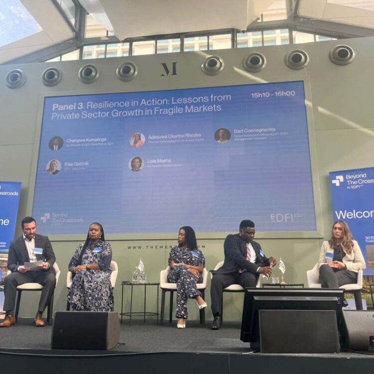 I had the honour of representing Aruwa Capital at the EDFI MC Corporate Day: Beyond the Crossroads 2025 in Brussels, where I spoke on the panel “Resilience in Action: Lessons from Private Sector Growth in Fragile Markets.” With EDFI MC as one of our Fund II investors, the conversation was an especially meaningful opportunity to share how inclusive capital allocation can strengthen fragile markets and foster sustainable growth. I was joined by Changwe Kumalinga (Good Nature Agro), Lola Masha (Babban Gona), Nilantha Jayanetti (Sarvodaya Development Finance PLC), Kisa Giebink (Okra Solar), and Bart Coenegrachts (EDFI MC) for a thoughtful discussion on how innovative models, including blended finance, are driving business success and resilience across sectors.