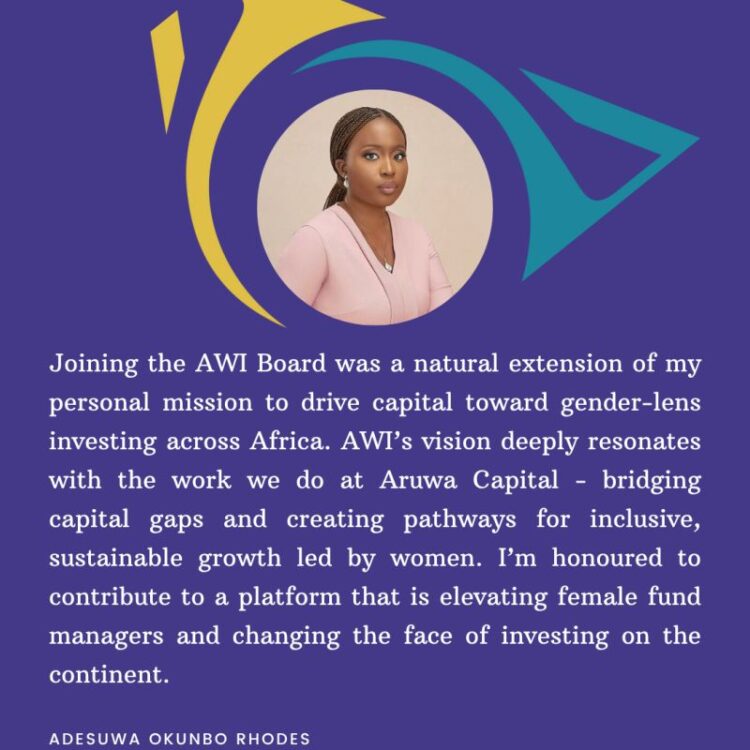In July 2025, I was honoured to be appointed to the Board of Advancing Women in Investing (AWI), an initiative dedicated to democratising access to funding and opportunity for emerging female capital allocators. This appointment closely aligned with my work at Aruwa Capital Management, where we are proving the business case for investing in women as fund managers, entrepreneurs, consumers, and stakeholders.